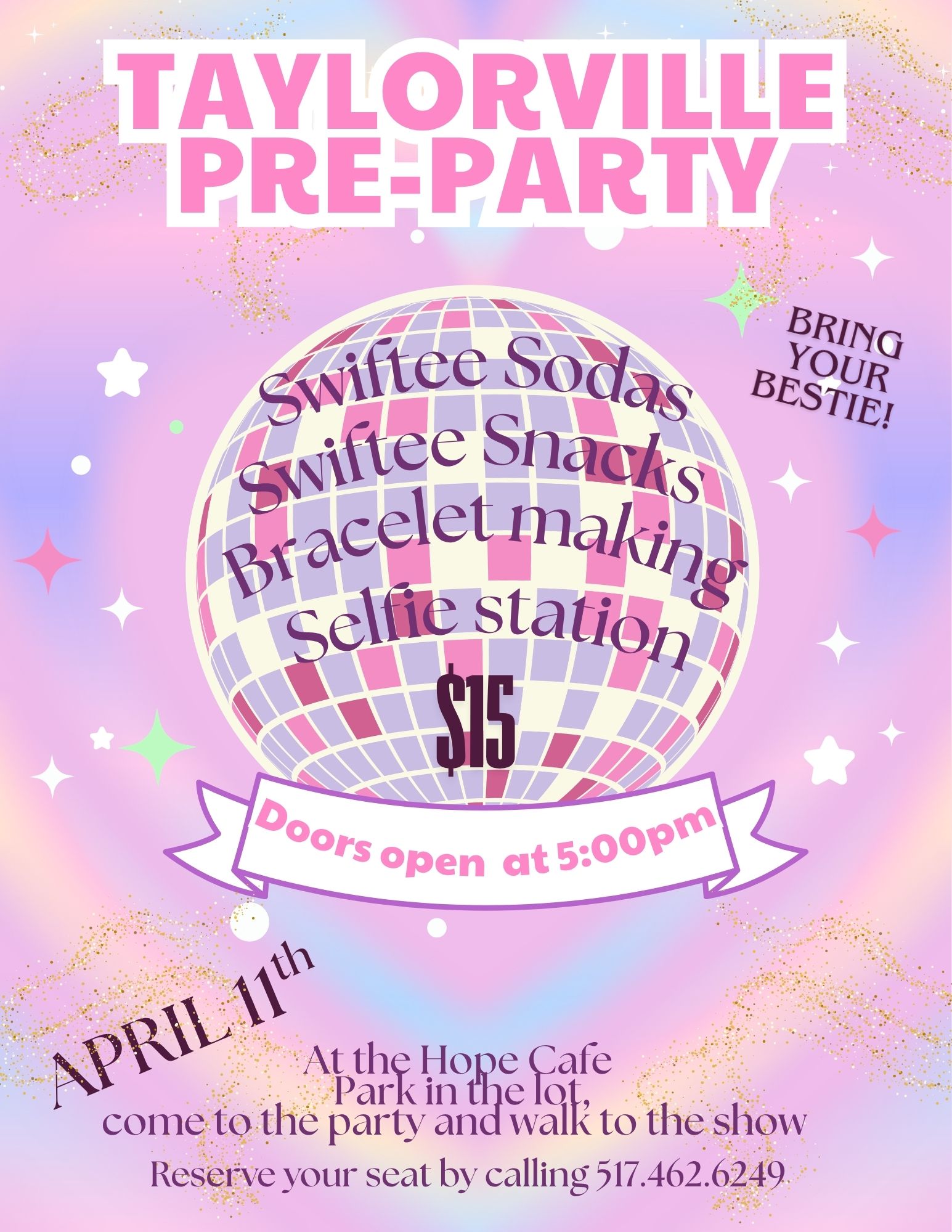 Kick off the fun with a bubbly Taylorville pre-party at Hope Cafe before heading to the show at Tibbits Opera House! Come hang out with your bestie before the show at Tibbits